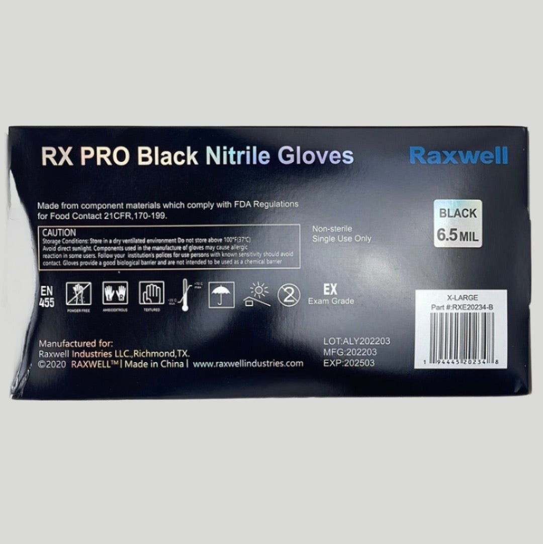 RX Pro Black Nitrile Gloves